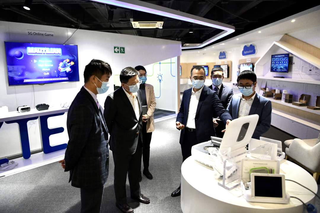 2022年7月26日,唐中东总领事一行走访中兴通讯(南非)有限公司。唐参观公司创新中心展厅并与负责人周涛举行座谈。