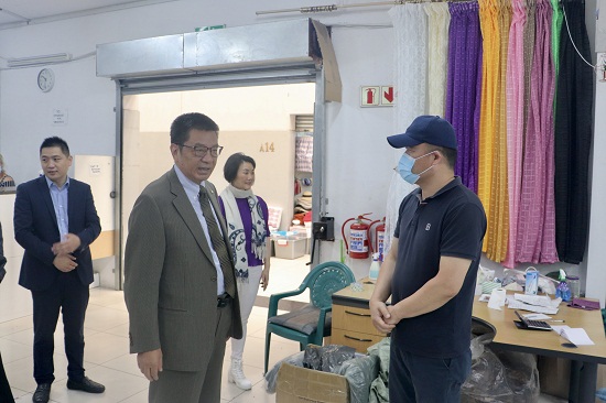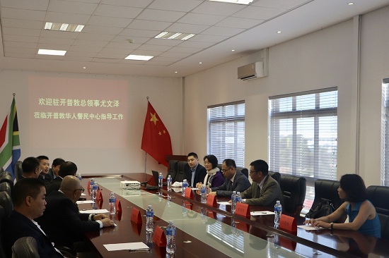 座谈会期间,尤总领事走访慰问开普敦中国城商铺,对商城安保、消防等方面工作进行检查,详细了解周边安全环境和近期治安状况,希望旅南侨胞提高安全意识,合法合规经营,助力华人社区繁荣发展。