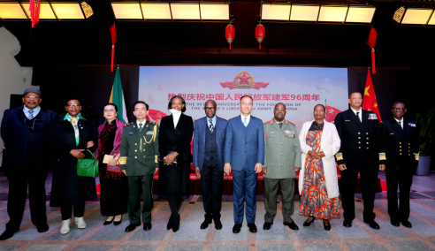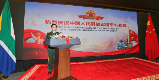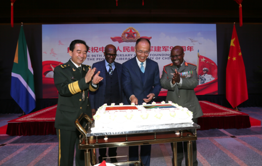 7月15日,中国驻南非使馆举行招待会,热烈庆祝中国人民解放军建军96周年。中国驻南非大使陈晓东、国防武官尚鸿少将、南国防和退伍军人事务部副部长马奎特拉、总司长赫隆瓦内退役中将以及包括南非国防军参谋长拉曼茨瓦纳中将、海军司令洛佩斯中将、人力资源部部长库布中将在内的南非国防军20余位将军及关键岗位负责人、南警察总局、外国驻南武官团等共150余位嘉宾应邀出席。