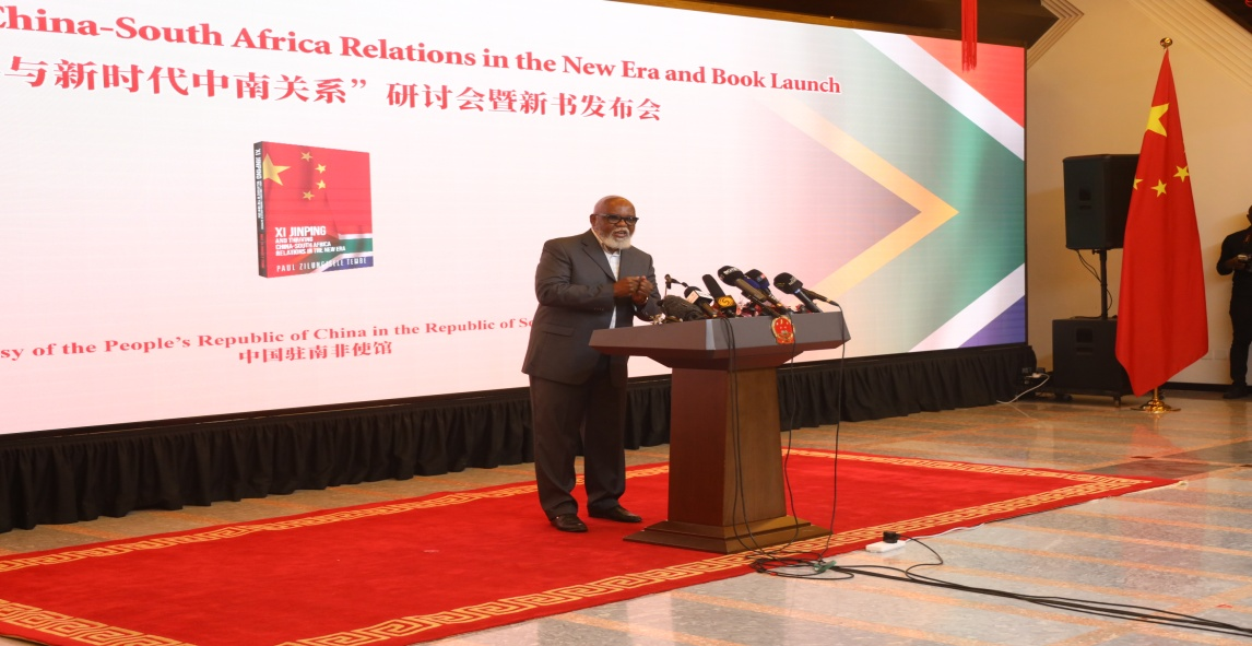 8月18日,驻南非使馆举办“习近平与新时代中南关系”研讨会暨新书发布会。陈晓东大使,南非非国大总书记姆巴卢拉,非国大第二副总书记、总统府规划监督和评估部长拉莫豪帕等党政高层,以及南非约堡大学非中研究中心主任孟大为等学界代表出席并致辞。新书《习近平与欣欣向荣的新时代中南关系》作者、南非大学姆贝基领导力学院高级研究员谭哲理介绍新书内容。中南等媒体记者、智库专家和学生代表等近200人参会。