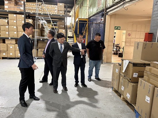 2023年9月5日下午,驻约翰内斯堡总领事唐中东一行走访了领区侨资企业奥斯玛集团,了解企业经营情况、督促安全生产、慰问企业员工。周育江副总领事等陪同走访。