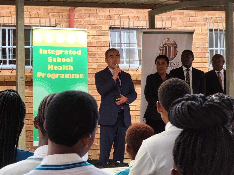 1月17日,驻约翰内斯堡总领事潘庆江出席总领馆向豪登省索韦托Siyabonga中学捐赠“暖心包”活动。豪登省议长梅格维、约堡市有关官员以及校方领导及学生代表约150人参加。