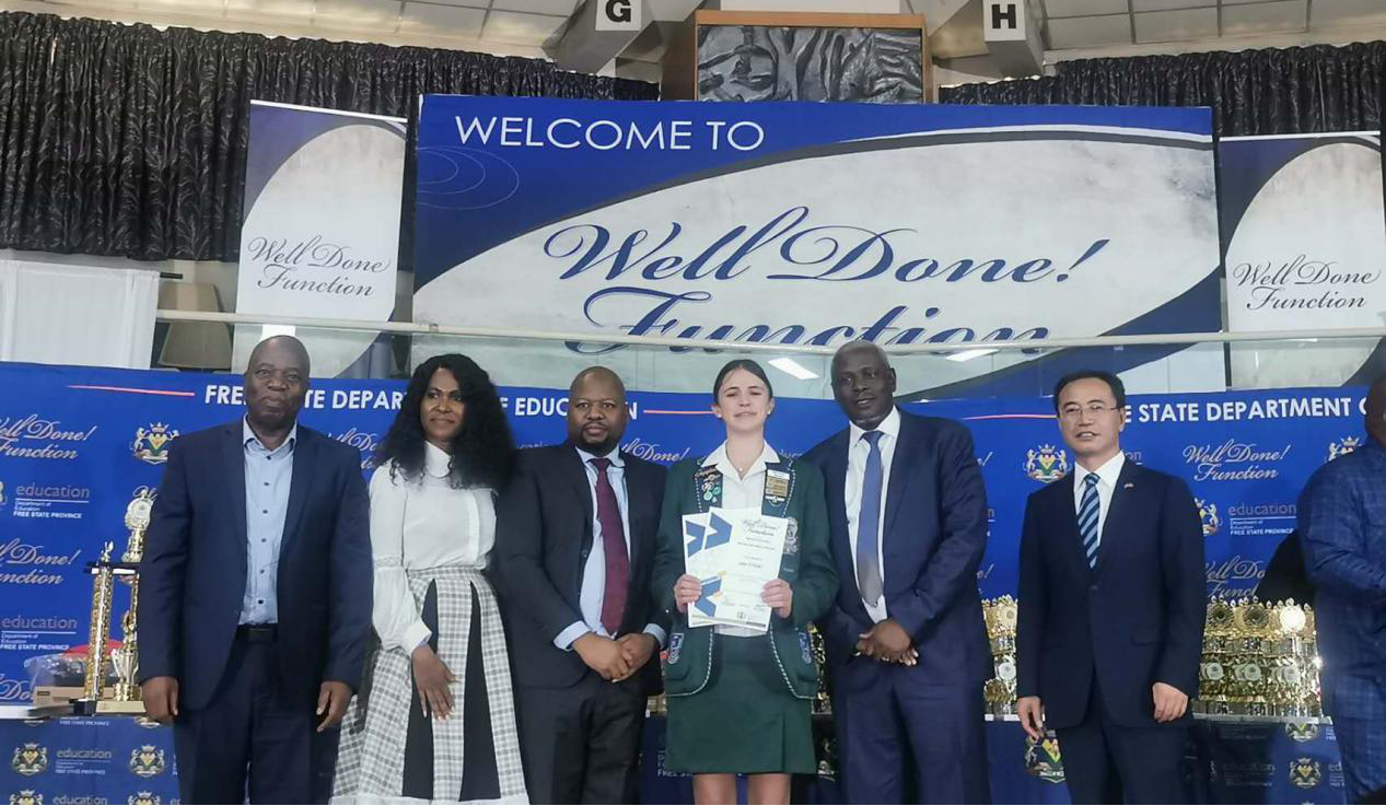 潘总领事在致辞中祝贺自由州省高考生取得优异成绩,表示中南关系步入“黄金时代”,中南教育合作向更高水平发展。祝愿学生们继续努力学习,做传承中南友好使者。周育江副总领事代表总领馆为前十名优秀高考生颁发奖品。
