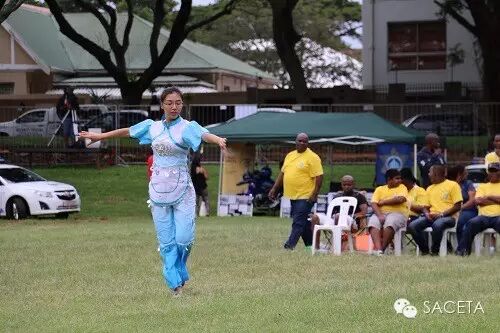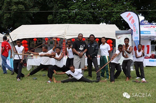 整场活动最吸引数千名来宾眼球的节目之一还是德班孔院为此次活动特别精心准备的中国武术之长拳、少林棍、擒拿和太极拳表演。或拳或棍、舒缓有致、刚柔并济,由南非学员组成的德班理工大学武术团队表演的中国武术紧扣本次活动主题,如行云流水般轻盈流畅、气势如虹的多种形式的武术表演让在场的观众叹为观止,赢得了阵阵掌声。