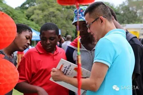 主办方南非警局为方便德班孔院介绍中国文化以丰富本次活动的多元主题,特地开辟了“中国文化”主题展位。经过精心布置,来自德班孔院的一角在诸多展位中最为醒目:红红的灯笼、神态各异的京剧脸谱、富有特色的中国传统服装,还有数百本中国语言与文化图书,都在向来往的市民们介绍着中国及中华文化的方方面面。从早到晚,不断有市民们在展位前驻足,对这个小小展位蕴含的丰富的中国民俗文化、语言、历史表现出极大的兴趣。