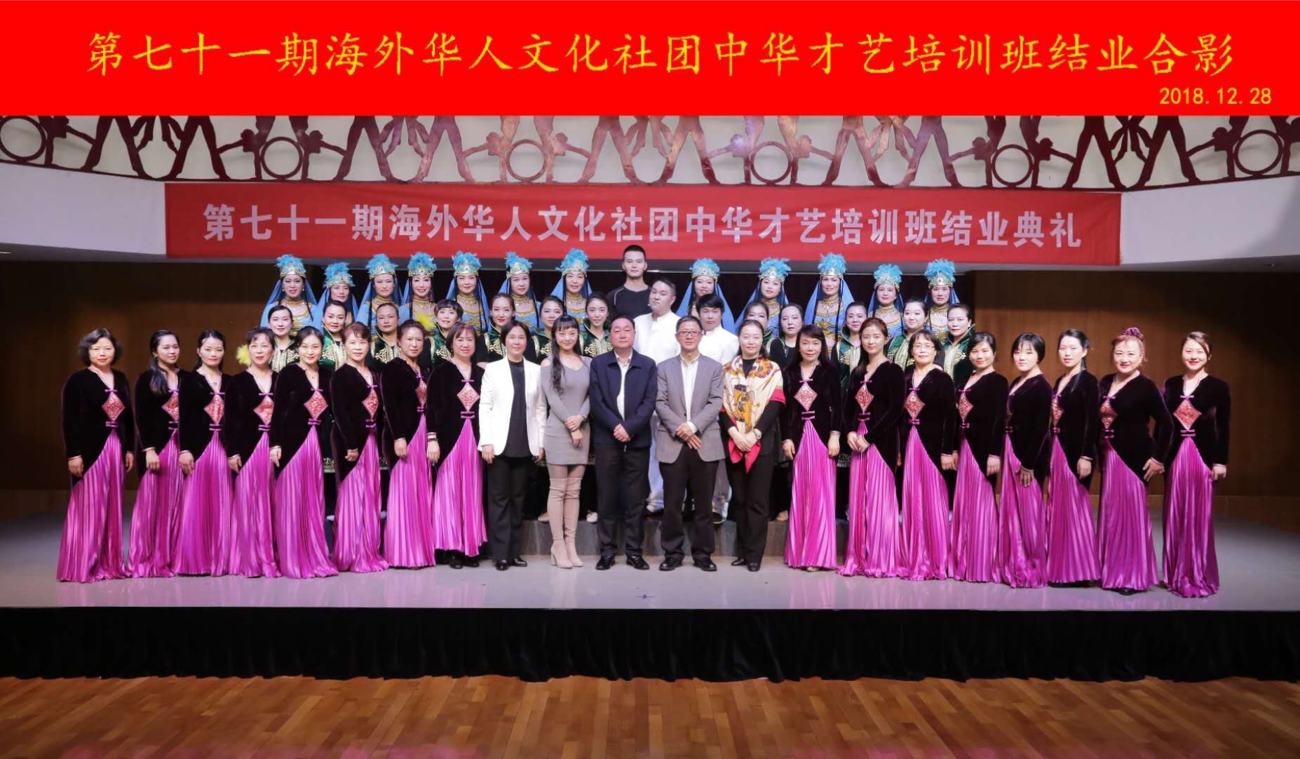2018年12月28日,由中央统战部侨务事务局主办,深圳华夏文化艺术学校承办的第71期海外华人文化社团中华才艺培训班圆满结业。开普敦华星艺术团先后派出22位学员参加了11期不同种类的培训,圆满结束了2018年度中华才艺培训的活动。