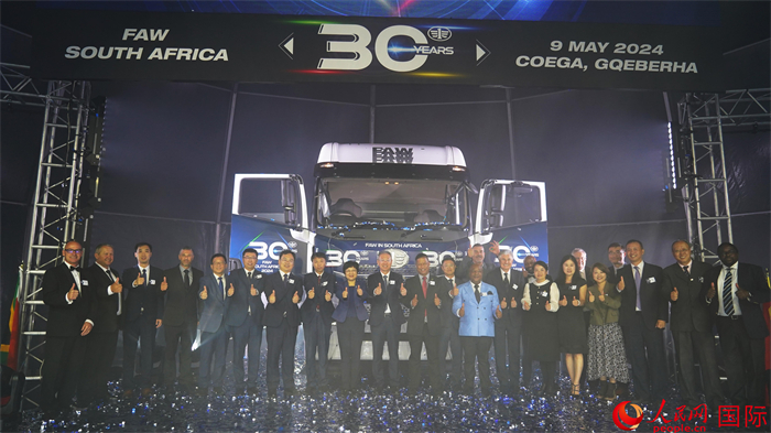 人民网约翰内斯堡5月10日电 (张茜)当地时间5月9日,一汽解放进入南非三十周年庆典在一汽南非库哈工厂(以下简称“库哈工厂”)举办。中国一汽海外事业总顾问胡汉杰、一汽解放常务副总经理于长信、一汽解放海外产品线总经理冷长春出席活动。中国驻南非大使馆、南非贸易及工业部、东开普省、曼德拉市等政府官员,一汽在南中资企业代表与一汽经销商、大客户代表、媒体代表等共同见证。