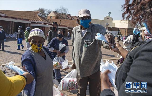 6月5日,在南非约翰内斯堡索韦托,市民领取口罩。 当日,南非一些慈善组织为约翰内斯堡索韦托的部分贫困居民发放食物和防护用品。截至5日,南非累计报告新冠确诊病例40792例,累计死亡848例。 新华社记者 陈诚 摄