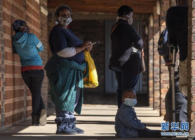 6月5日,在南非约翰内斯堡索韦托,市民排队领取食品。 当日,南非一些慈善组织为约翰内斯堡索韦托的部分贫困居民发放食物和防护用品。截至5日,南非累计报告新冠确诊病例40792例,累计死亡848例。 新华社记者 陈诚 摄