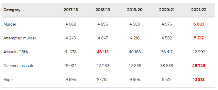 数据显示,该国的暴力犯罪数量发生了重大变化,该季度是过去五年来同期最严重的一个季度。