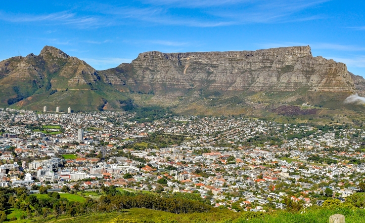 2023年7月17日,在南非开普敦,游客乘坐缆车游览桌山。新华社发(哈比索·姆卡贝拉 摄)