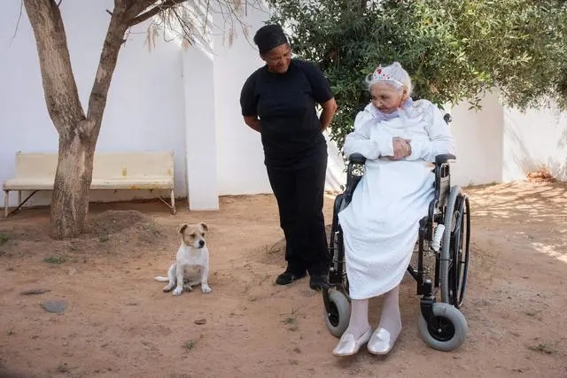 9月27日,在南非陶斯勒菲,庆祝生日的118岁老人玛格丽特·马里茨坐在轮椅上。新华社/法新