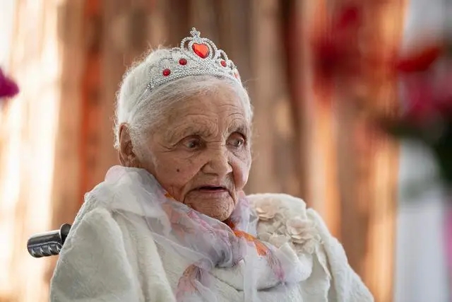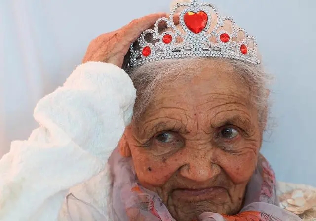 9月27日,在南非陶斯勒菲,118岁老人玛格丽特·马里茨在生日庆祝活动上。新华社/路透