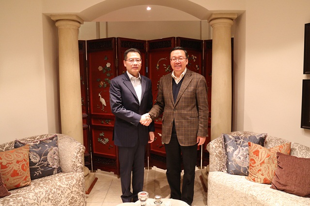 7月13日,田学军大使会见正在南非访问的国家质检总局进出口食品安全局局长林伟一行。