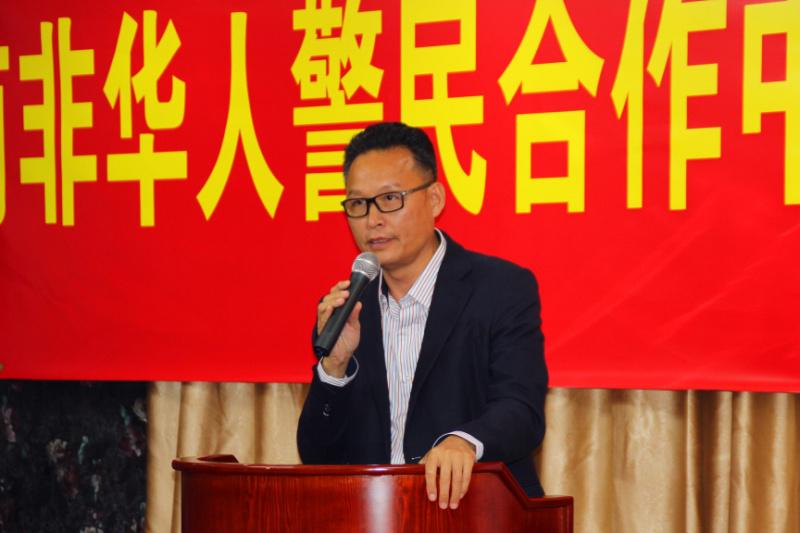 3月23日下午,南非华人警民合作中心举行第七届主任选举大会,通过无记名投票方式,最终全非洲中国和平统一促进会会长李新铸高票当选。屈伯勋副总领事、约堡市公共安全局孙耀亨局长、现任警民中心理事等200余人出席选举大会。