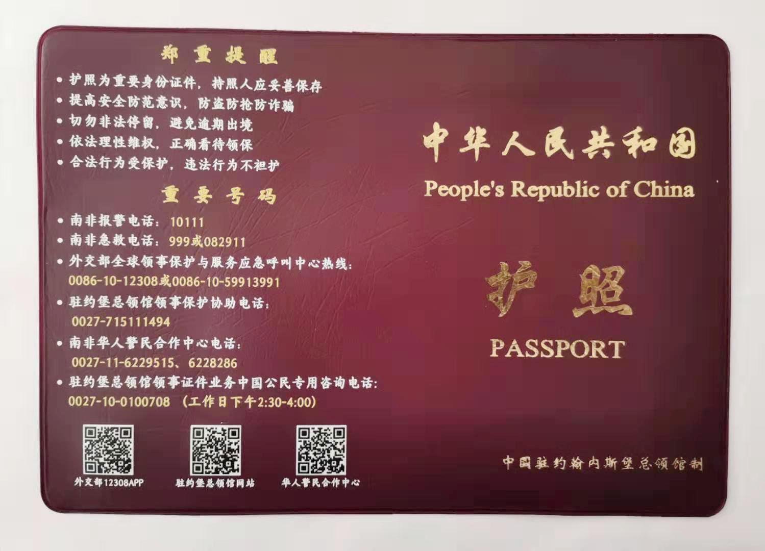 为加大预防性领事保护宣传力度,提高在南同胞日常安全防范意识,针对我馆领区治安状况和侨胞每天携带护照出行备查的需要,我馆专门设计制作了领保提醒主题的护照封套,并在总领馆办证大厅向办证同胞免费发放。封套上印有安全提醒和应急联络方式,以及“外交部12308”手机APP、总领馆网站、华人警民合作中心等网站的二维码,让领事保护与协助与每位同胞相伴,紧急时刻能立即联系求助。约堡总领馆还将于12月起正式启用银行POS机刷卡缴费服务,为领事证件申请人缴费提供更多便利选择。