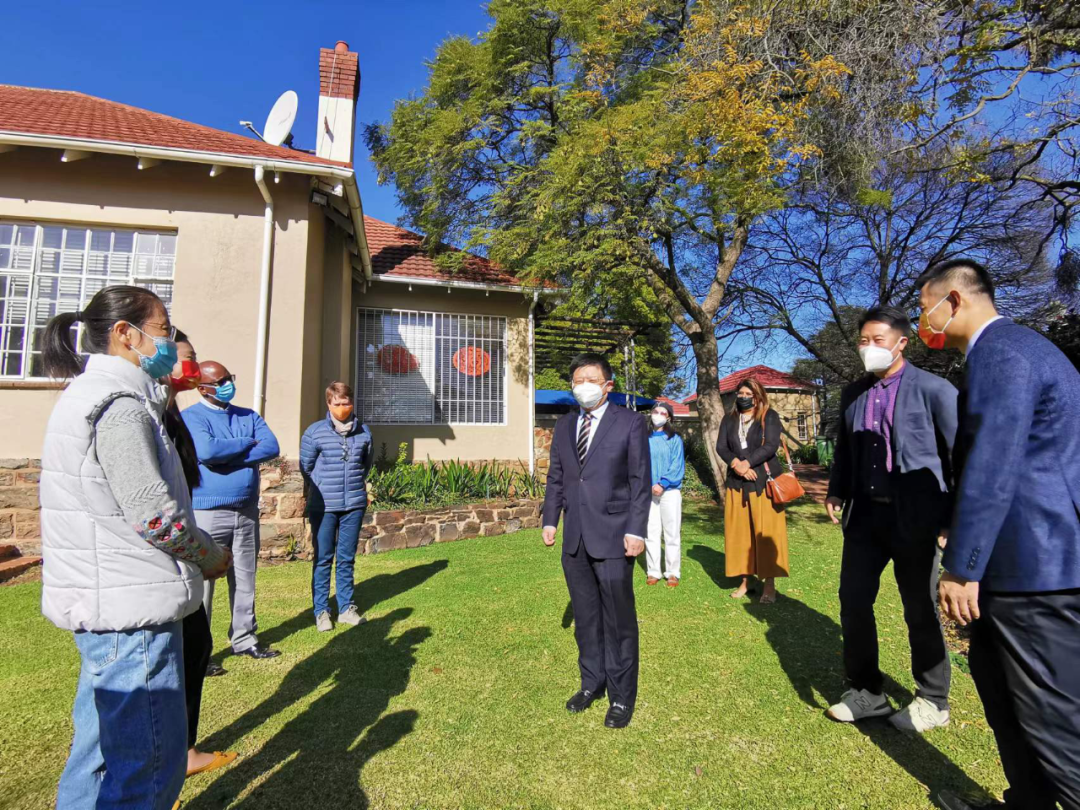 6月10日上午,唐中东总领事一行走访约堡大学孔子学院。孔子学院中方院长李宝生、外方院长孟大为、中外方员工、优秀学员代表陪同。