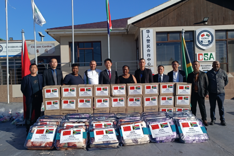 9日下午,工作组向南国民议会议会事务主席弗罗里克转交了一批食品包、毛毯和卫生用品等物资,分别捐赠给其选区的贫困社区、教堂和学校。PE市长约翰逊女士(Ms. Eugene Johnson)、部分区议员以及PE华人警民中心陈敦赐主任等出席了捐赠仪式。