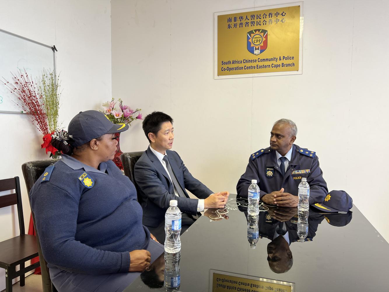 在东伦敦市期间,汤拜会了东开普省负责犯罪记录与刑事调查的省警察副总监莫萨米准将、东伦敦市贝肯湾警局局长诺克瓦谢卡。汤向其介绍二十大报告主要内容和会议成果,敦促当地警察部门针对近期发生的涉中国侨胞恶性治安案件加大侦破力度,切实担起安全主责,采取有效措施,保护我侨胞合法权益及人身财产安全。