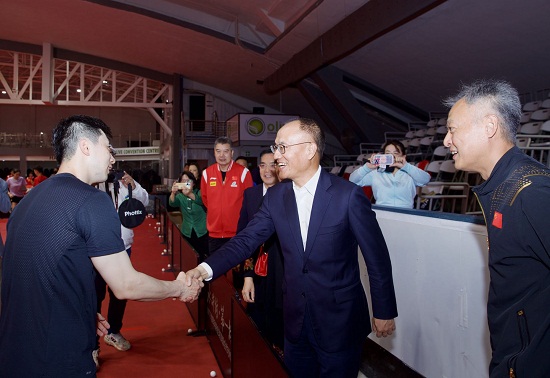 陈大使表示,这是世乒赛历史上首次来到南非,南非方面对赛事筹办工作非常重视,南非人民和全世界球迷也对世乒赛充满期待。今年是中南建交25周年,也是金砖南非年,南非将于8月主办金砖国家领导人第十五次会晤。国乒队此时来南非参赛可以说是恰逢其时,将进一步丰富中南人文交流,增进中南人民友谊。陈大使祝愿国乒队在此次南非世乒赛中赛出风格、赛出友谊、赛出水平,取得优异成绩。