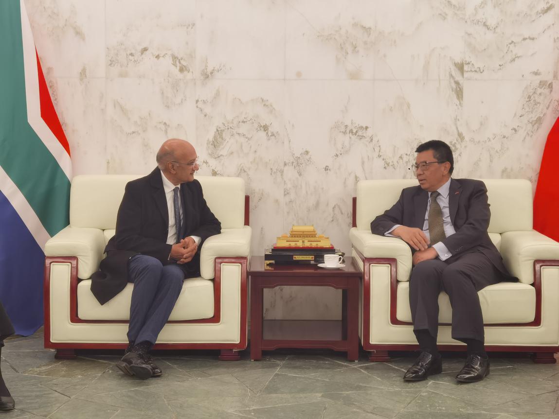 7月31日,尤文泽总领事在总领馆会见开普敦大学校长Dayanand Reddy教授、分管研究和国际合作的副校长Sue Harrison教授及国际合作处处长Quinton Johnson一行。
