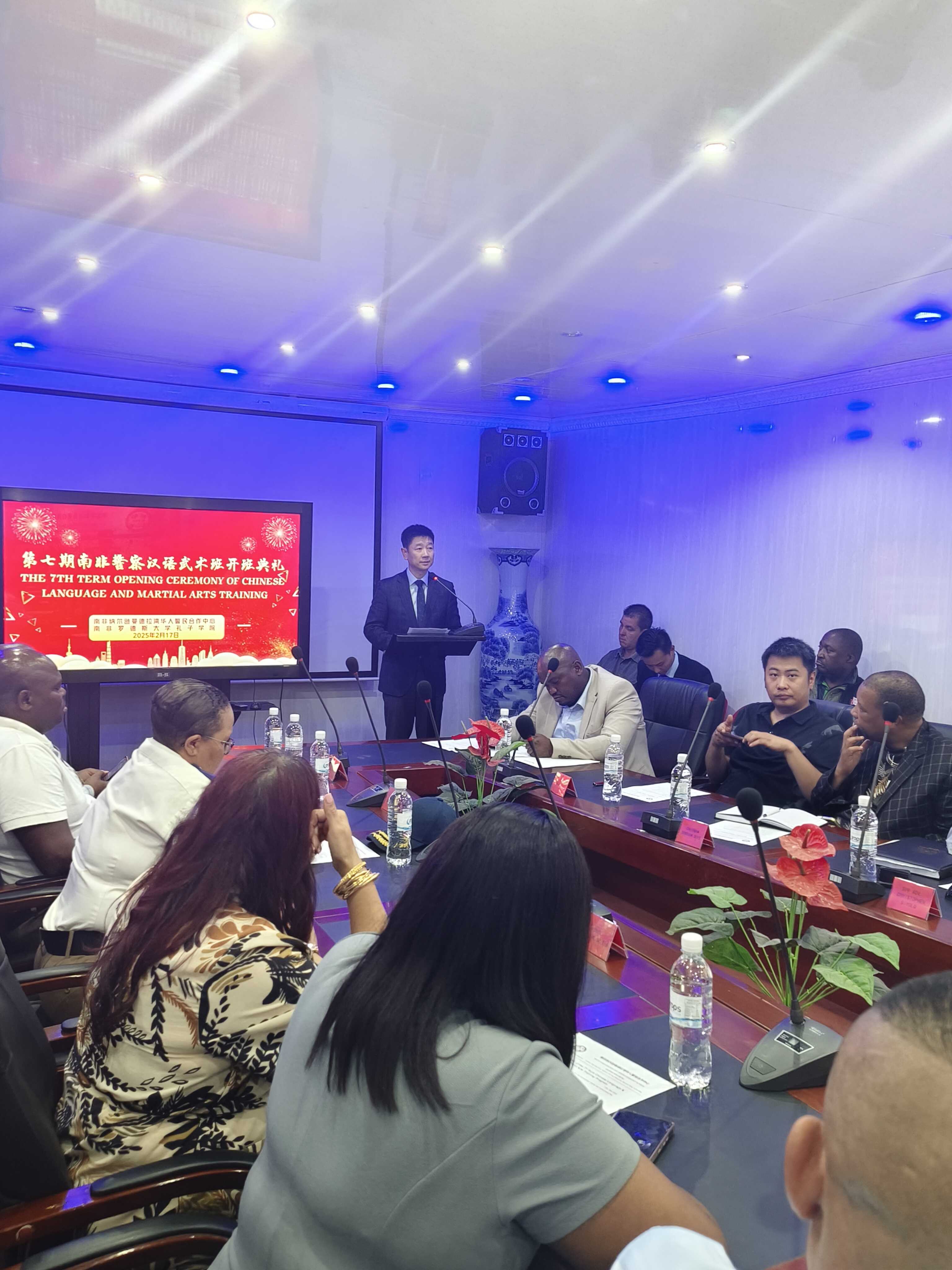 2025年2月16日—18日,汤长安副总领事率工作组赴纳尔逊·曼德拉湾市召开安全形势座谈会、与当地警方会谈,并出席当地华人警民中心与罗德斯大学孔子学院开办的第七届汉语武术班开班典礼。