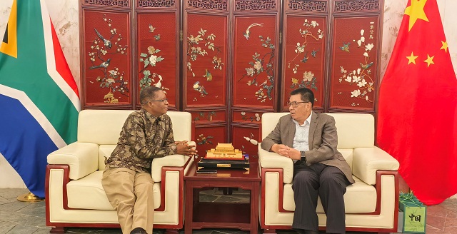 2025年3月4日,尤文泽总领事在馆内会见南非议会省务院国际事务主席拉德贝(Hon. Bhekizizwe Abram Radebe)。