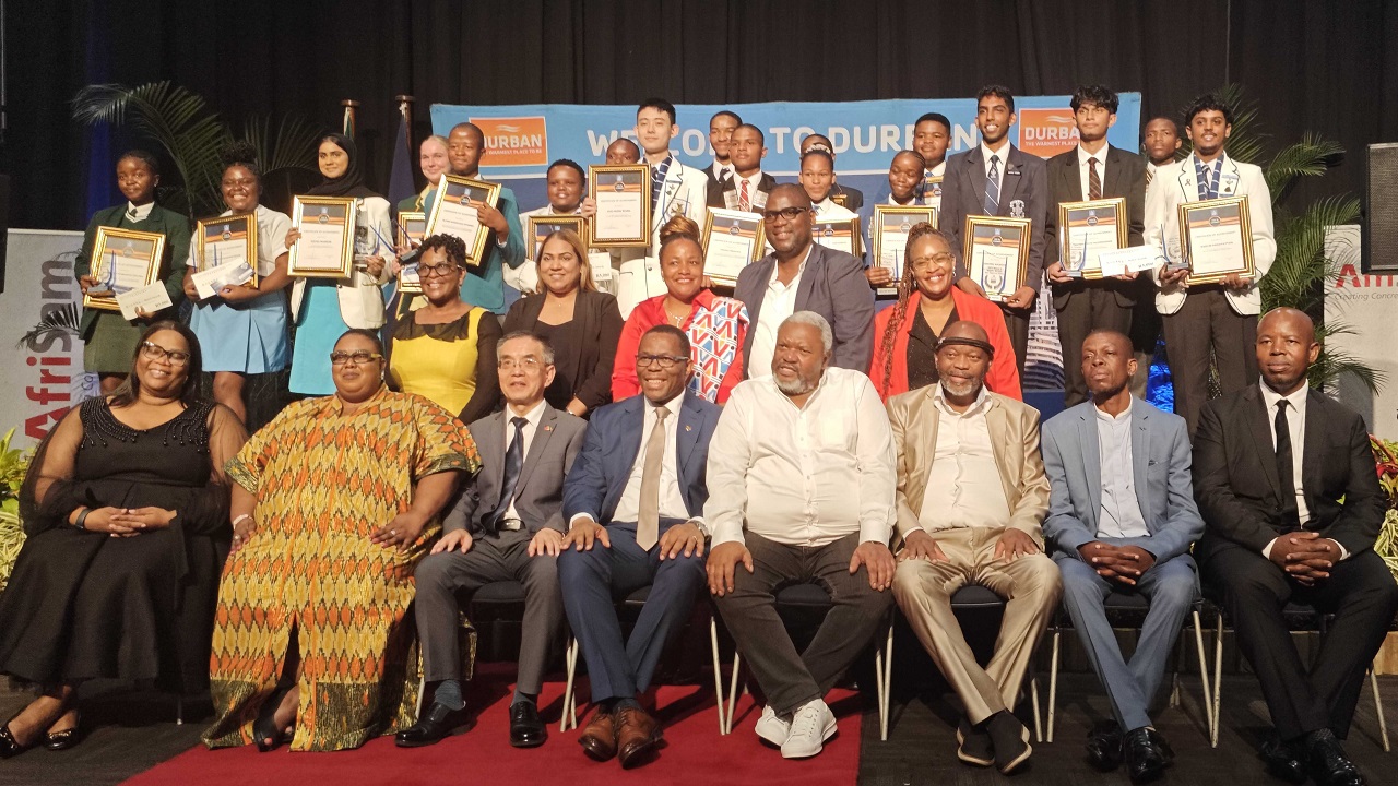 1月23日,南非德班市2025届高中会考表彰大会在德班国际会议中心举行。中国驻德班总领事李志工应邀参加,并与德班市长夏巴共同为获奖优秀高中毕业生颁奖。