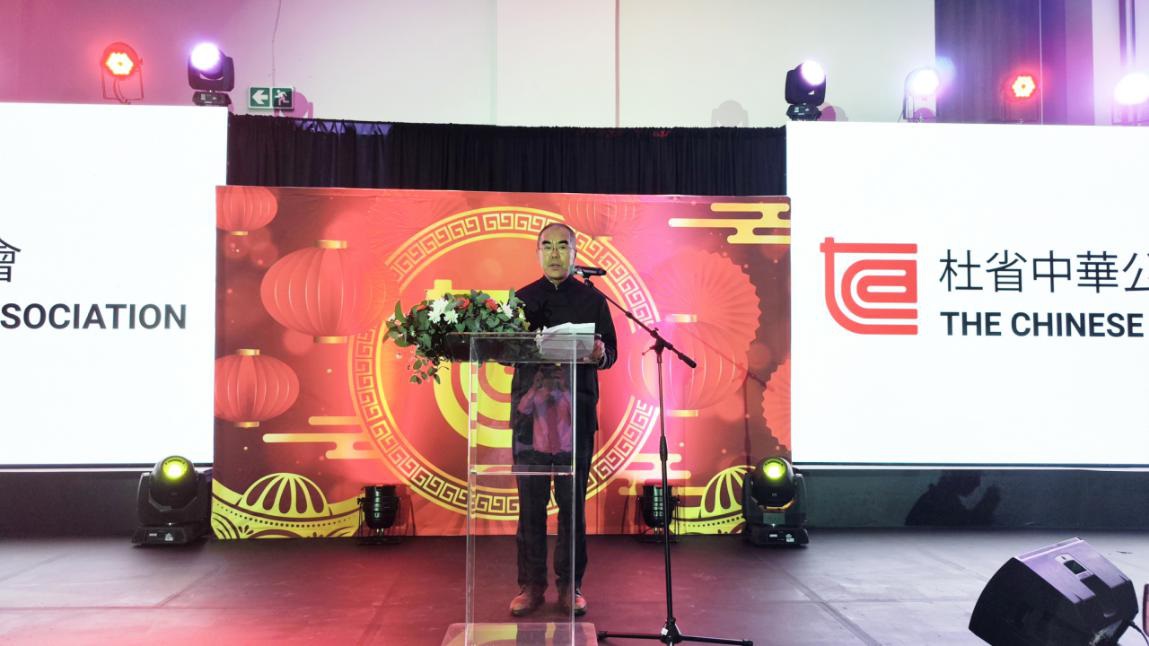 潘庆江总领事在致辞中向侨胞和南非朋友致以新春祝福,阐释共庆中国年对促进文明互鉴、增进民心相通的重要意义,展望“中非人文交流年”和中南两国关系和地方交流的美好前景,希望广大侨胞传承发扬爱国爱乡、团结奋进、融入造福当地的优良传统,为强国建设、中南友好贡献更大力量。