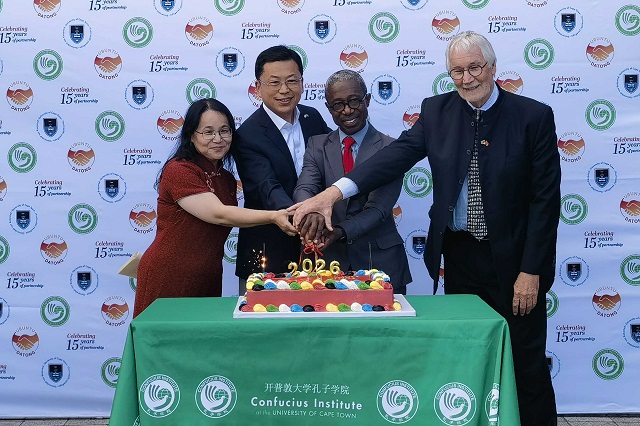 任总领事表示,开普敦大学孔子学院是开普敦大学和中山大学强强联合的成果,自成立以来,已成为南非青年学习汉语、感知中华文化的重要平台。新的一年,期待孔院以“中非人文交流年”为契机,开展更多丰富多彩的文化活动,为中南友好事业作出更大贡献。马乔兹副校长欢迎任总领事到访,感谢总领馆长期以来的支持,表示希望在总领馆帮助下,进一步推动双方交流合作。