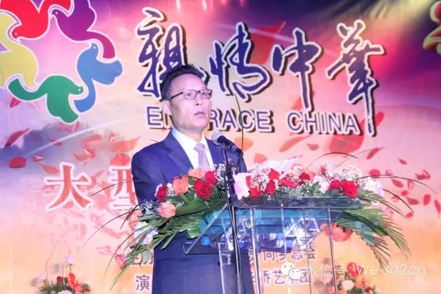 中国驻南非大使馆经济商务处荣延松参赞在致辞中充分肯定了南部非洲江苏同乡总会历年来的工作并对此次典礼表示祝贺,承诺将继续认真做好服务侨胞工作,积极促进中南经贸交流,与侨胞共同努力,取得更大的成绩。