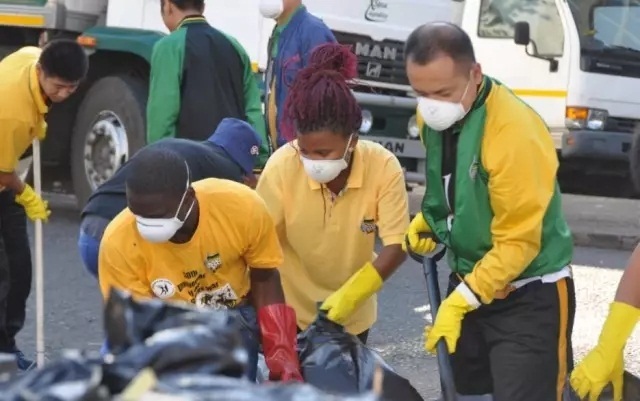 4月1日,在约堡市党部和非国大党西罗町党部的共同号召和组织下,部分热心侨领、数十名党部干部成员,同来自118区党部的志愿者一道,对约堡西罗町唐人街地区堆积如山的垃圾,进行了彻底清理,并统一装袋后运往市政垃圾收集站。