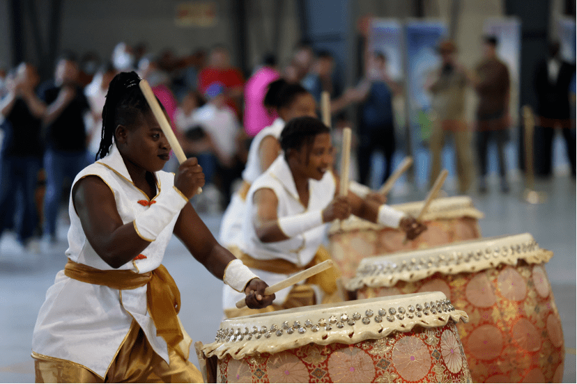 裁判长潘勇和运动员代表王瑾分别进行宣誓后,南非本地篮球啦啦队给观众们带来了活力四射的舞蹈表演,中资企业代表王鹏飞表演了二胡独奏《赛马》,开幕式在黄丹等合唱的《我和我的祖国》中落下帷幕。