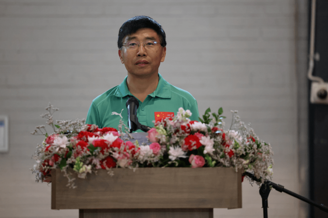 郑冰开公使在致辞中祝贺协会首次举办国庆运动会,并对参赛选手致以诚挚的节日问候,他希望广大在南中资企业继续携手努力、共筑平安,以实际行动迎接党的二十大胜利召开。