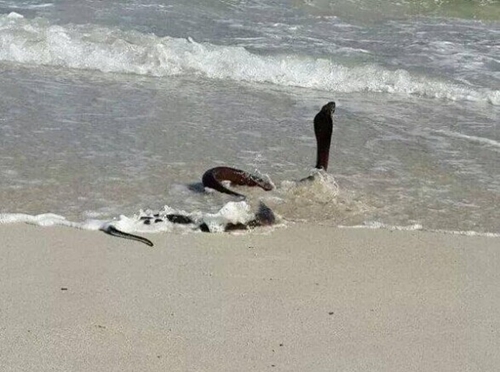 近日,这一幕就发生在南非开普敦附近的豪特湾(Hou Bay)海岸,而这条悠然自得的眼镜蛇正属当地品种开普眼镜蛇(Cape Cobra)。