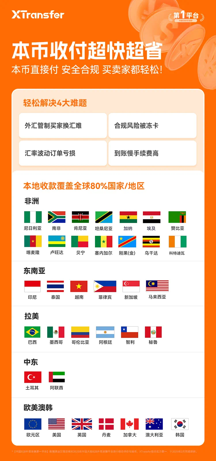 XTransfer,不仅是中国大陆合规持牌金融机构,同时也是中国支付清算协会会员单位,作为招商局创投领投企业,深耕跨境支付领域长达九年,专注于为中小微外贸企业提供一站式外贸收付解决方案。自2023 年 9 月上线非洲本地收款服务后,已为众多中非贸易企业及在非华商解决了收款难题。