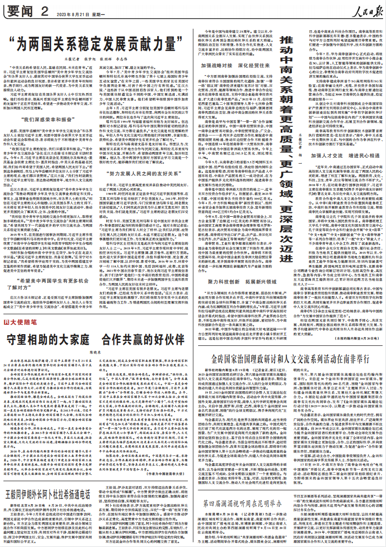 8月21日,驻南非大使陈晓东在《人民日报》“大使随笔”专栏发表文章《守望相助的大家庭 合作共赢的好伙伴》,全文如下: