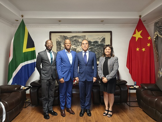 2024年5月16日,驻约翰内斯堡总领事潘庆江会见豪登省政府秘书长莫苏维、分管外事副秘书长穆迪等人。双方回顾近年来中国与豪登省友好关系发展情况,并就共同推动中国有关省市、企业与豪登省加强交流合作等交换意见。
