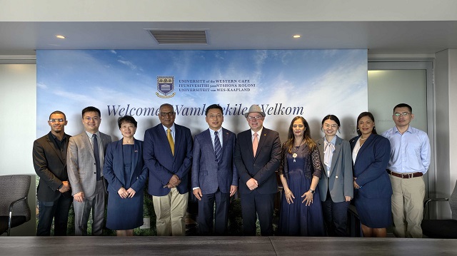 2月11日,中国驻开普敦总领事任发强应邀访问西开普大学,与校长罗伯特·贝尔福教授等校领导友好交流,并参访该校中医孔子学院。