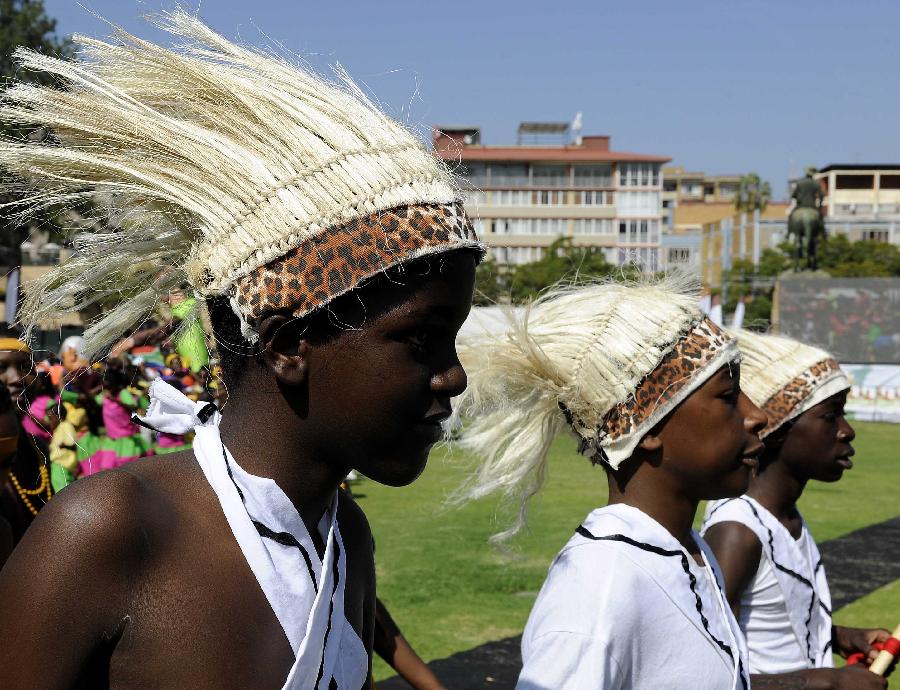新华社照片,比勒陀利亚,2012年4月27日 (国际)(1)南非隆重庆祝自由日 4月27日,人们在南非行政首都比勒陀利亚举行的游行活动上跳起舞蹈。 当日,南非举行盛大游行活动,庆祝自由日。1994年4月27日,南非历史上第一部体现种族平等的宪法生效,这一天成为南非的国庆日,也称“自由日”。 新华社记者李启华摄